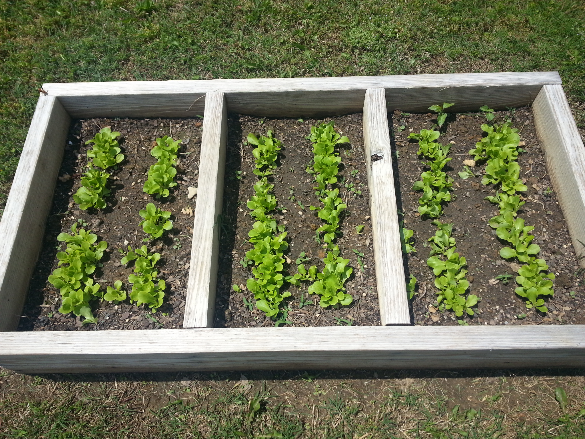 In addition to our kale which survived summer heat over 100 degrees and three snow storms and temperatures below 10 degrees this winter and our two rosemary bushes that never die, our flat leaf parsley, curly parsley, lavender, sage, and mint all came back or survived the winter. We had to replace the spicy oregano and sweet basil in the herb garden and added amaranth; however we are now ready for our leafy greens to sprout.